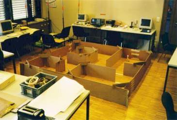 in the 1998 event. At first only a team of two (Marco and Roman), Mauro joined us at the beginning of 1998. Each one of us then took care of distinct parts of the robot: Marco = sensors, Mauro = power electronics and mechanics, Roman = programming and odometry.