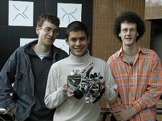 electronics laboratory to check whether the robot had survived the journey. When we arrived in Hartford, there were still lots of things to fix on our robot, but finally it functioned satisfactorily. However, we could count on Murphy: at the very moment of the contest, the robot simply refused to budge! Luckily we found the burnt chip in time. Of 60 robots present, ours finished second, bested only by the Trinity College (Hartford) students' robot.
